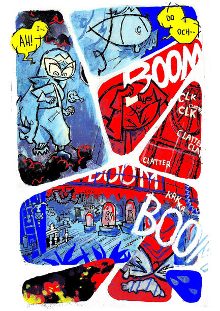 🤎LifecoachRoach for the SaintBernoodleImprovised comic-strips about a roach and a st.bernoodle-woman. collab with my wife.